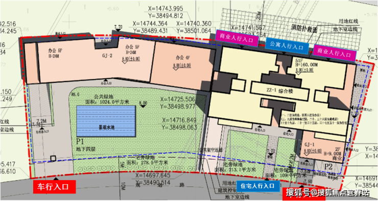 项目内车行动线及人行动线清晰区分,车行入口设置在项目的东侧和西侧,一进一出,互不干扰;住宅人行入口设置在项目南侧,公寓及商业的人行入口则设置在项目的北侧,最大限度区分人流动线,保障业主的安全。
