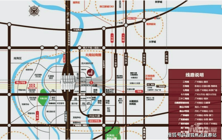 高快速路网环绕南站周边:广明高速、南大干线、东新高速、广珠西线。