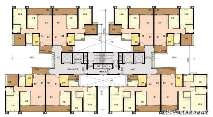 项目住宅为南北对流布局,四梯八户,每两条电梯负责四户业主的上落,互不干扰。