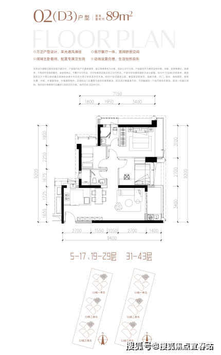 约89㎡3房2厅2卫,户型方正呈竖厅布置,结构上客餐厅一体、动静分区。设计上充分贯彻实用性,约89㎡做到少见的3房2卫,在前海这类改善片区的稀缺性很高。