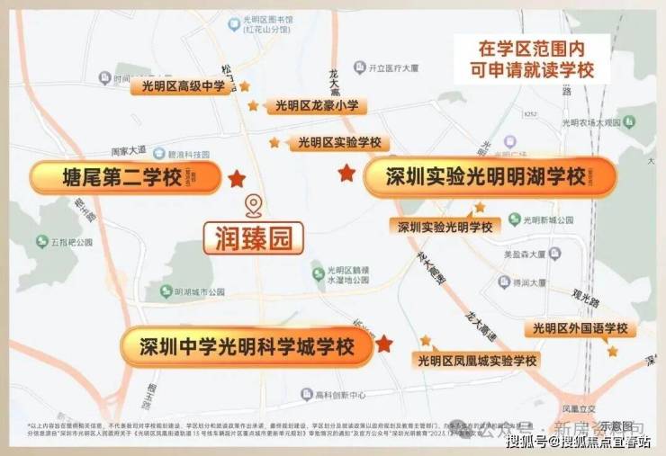优质教育:社区内配置幼儿园,西北侧地块为九年一贯制学校(规划中),与项目一路之隔。大城规划3所九年一贯制学校、其中一期学校深圳实验光明明湖学校2025年9月已开学(信息源自深圳光明学校公众号),项目3公里范围内涵盖深圳中学光明科学城学校、深圳市光明实验学校等。