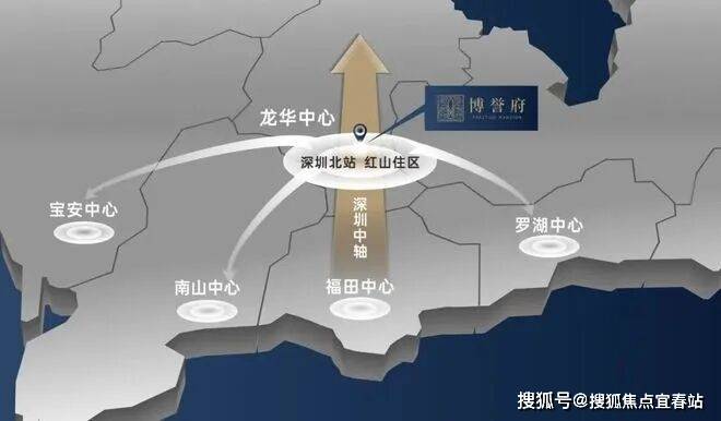 圳心中轴:北站红山双芯加持,深圳“中轴脊梁”l 深圳龙华——傲踞深圳地理中心和城市发展中轴,铸就产值万亿级的深圳“中轴脊梁l 鸿荣源博誉府坐享中轴优越地理位置,多维立体路网加持,30分钟内驰骋宝安、南山、福田、罗湖区,悦享高效便捷生活