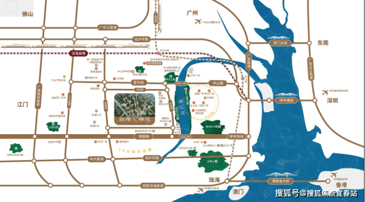 项目屹立大湾区核芯佳地,坐落于博爱路的源头——博爱一路与翠景道两条主干道之间,扼守中山城区西大门,纵享105国道、广珠公路、江中公路等,直驳广珠城轨、广珠西线等高速交通路网,轻松直达大湾区,与世界无边界交汇。