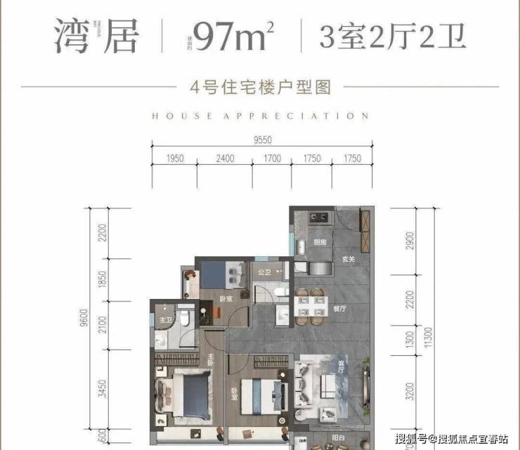 建面约97㎡三房,享有约9.5m朝南面、极致采光通透体验,保证家庭空间日照充足,日常即能享受到常驻的温暖阳光,在家中皆可收藏四季美景的变换。