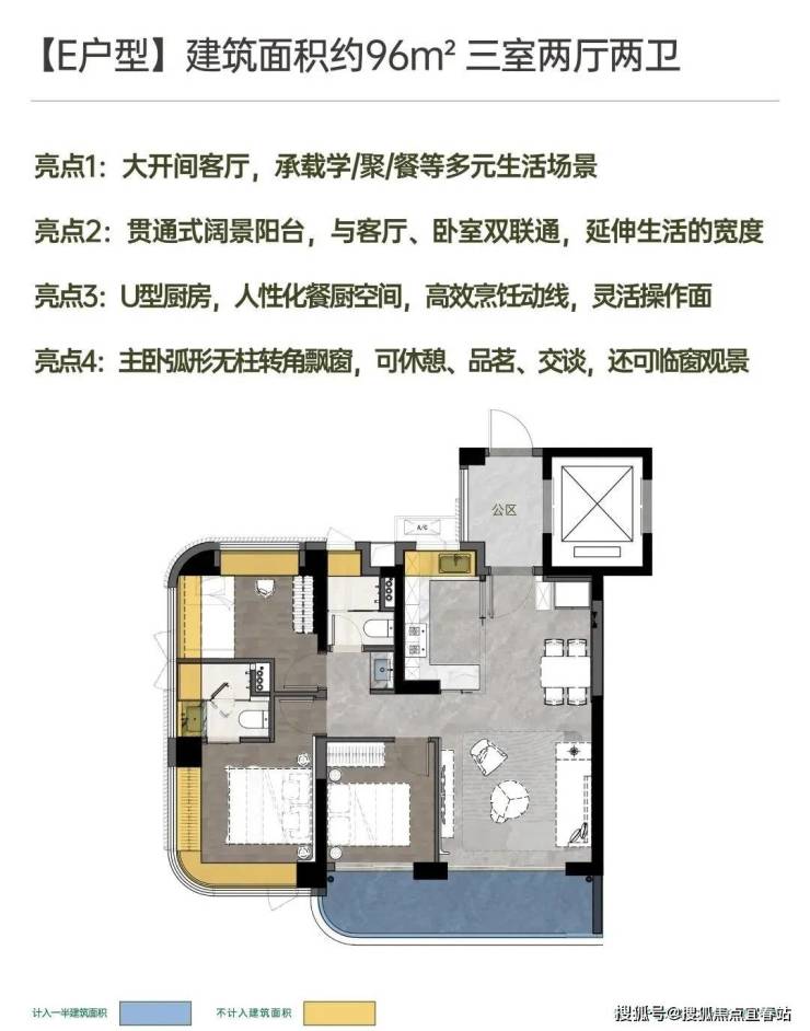 270°弧形无柱大尺度飘窗、大宽厅、大阳台,带来更多使用空间。