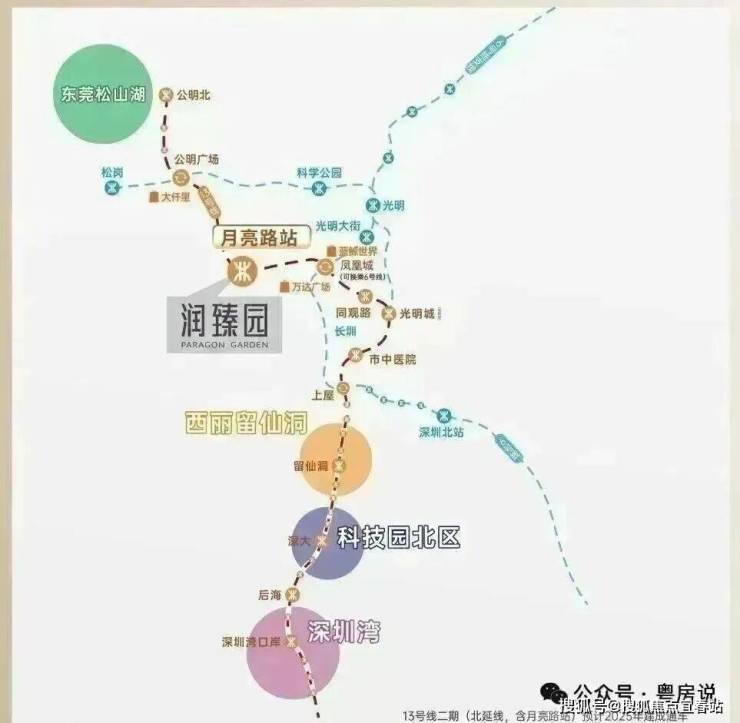 项目家门口是主干道松白路,自驾半小时可达南山,周边还有南光高速、龙大高速、深圳外环高速等交通要道,13号地铁线”月亮路站“距离约300米,目前还在建设当中,预计在2025年底-2026年初开通运营,1站直达凤凰城换乘6号线,3站至光明城高铁站,未来通过13号线可快速连接南山科技园、后海总部等核心区域,未来该线路将延伸至东莞松山湖,并接驳29号线(规划中),形成大湾区黄金轴线。