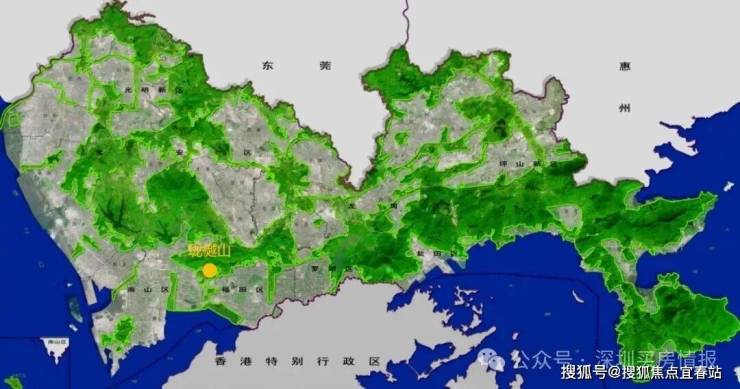 中心区域:深圳山海城中轴,左手香蜜湖、右手华侨城,六大总部基地环伺