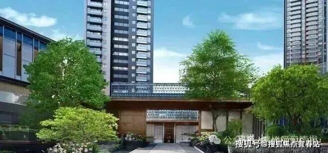 小区是往现代高端社区方向打造,步行大门是山林水石设计,而车行出入口则设计了酒店级回旋处落客区,跟「胤璞」很像。