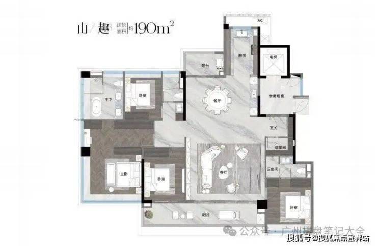 190㎡-四房两厅三卫——约17.6米南向面宽·9.4米南向景观阳台·家族式社交大方厅