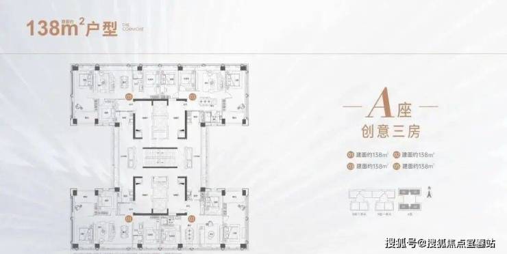 项目主打户型138㎡百变空间。(基本没有承重墙,内部可以按需求自由改造)