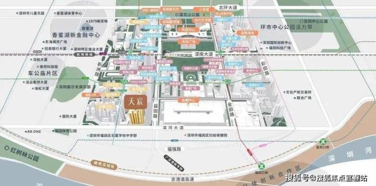 【项目地址】项目位于福田中心的核心位置,东边是会展中心,东北面能看见平安金融中心大楼,西侧是发展兴苑东区,南邻滨河大道,北临星河国际。