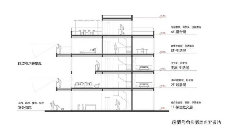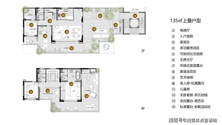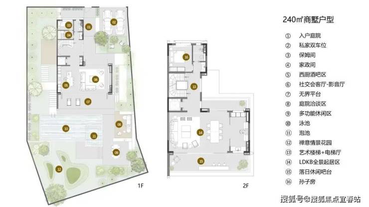 240㎡商墅户型,通过功能的垂直分区设计,充分发挥底层架空的开放性、层高赋予的空间弹性及屋顶花园的生态性,营造公共与私密的不同空间层次。同时尊重场地特性与功能需求,构建空间仪式感和体验层次。