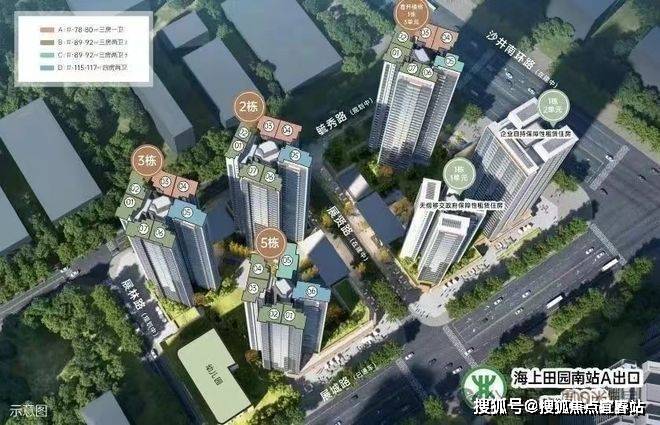 会展湾雍境,与12号线地铁海上田园南站A口直线距离约50米。