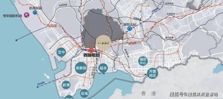 从地图上来看,如果将罗湖、福田、南山、宝安这四个区看成一个整体,西丽站所处的位置正好是这个区域的正中心。