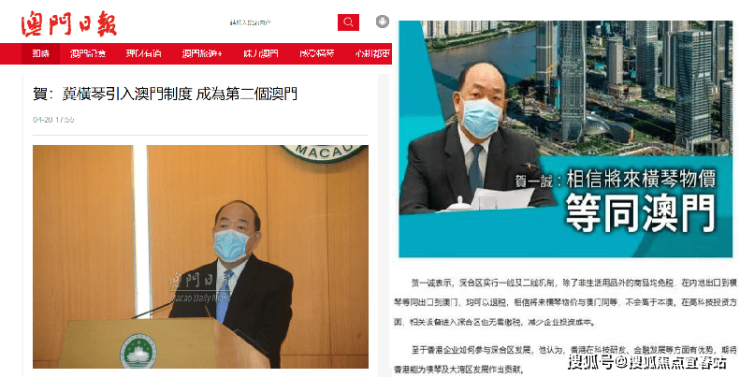 澳门特首贺一诚:横琴粤澳深合区实行 “一线管理”及 “二线管理”,除了非生活用品外的商品均免税,而内地出口到横琴的商品,等同出口到澳门,均可退税,相信未来横琴物价将与澳门一样。