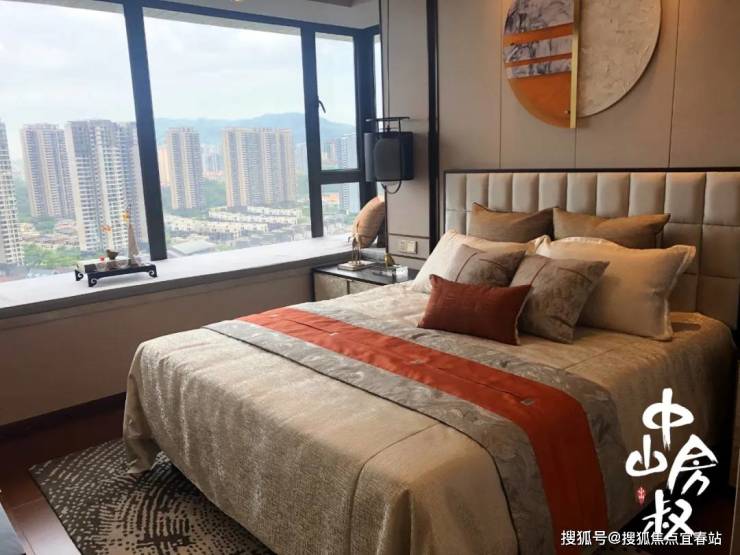 主卧开间超3米,带L型转角飘窗,可放下2米大床、床头柜、梳妆台等,整体空间十分宽敞,采光较好。
