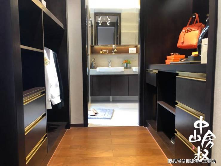 最后来到主卧,进门右侧为一体化设计的衣帽间和卫生间,两者有推拉门隔开, 让衣帽间不至于被湿气侵袭。