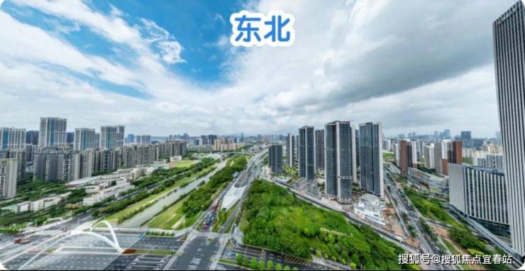 东北:楼下近距是公园绿地和双界河东段景观,远处看新安老城方向,整体远景城市景观为主。