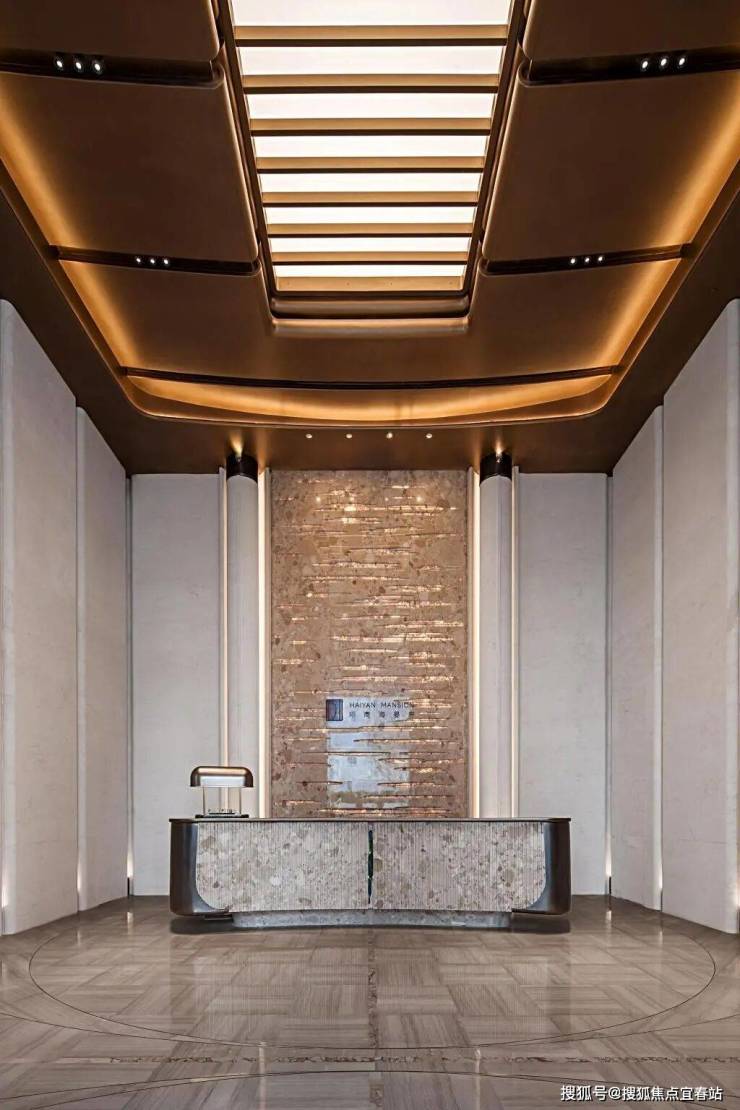 双扇仿铜平移门,用万斤重量象征家业“稳若磐石”;大堂背景墙镶嵌法国进口奢石「莫奈花园」,光影之下波光粼粼……定格“海湾瞬间”。