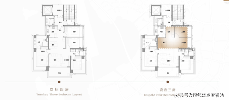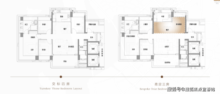 项目“前置”般地提供三房和四房两种布局选择,让不同的空间美学,贴合不同家庭的所需所想。