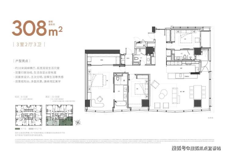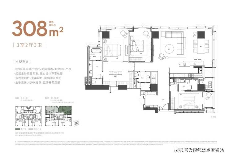 大尺度空间 纵享环幕视野大平面大尺度定位,层高约3.6米,横厅设计确保奢阔观景面,全户型纵享环幕视野。项目打造建面约215-620㎡纯粹品质公寓,顶层为建面约1270㎡公寓产品。