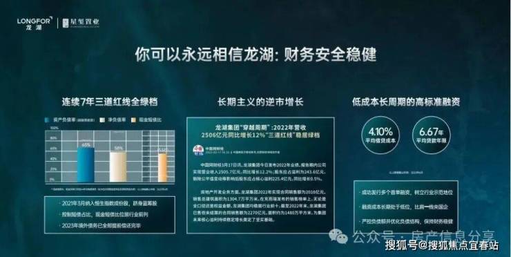 龙湖集团是一家世界五百强、全国前十强开发商,93年成立于重庆,目前总部在北京, 09年在香港联交所主板上市,龙湖业务涵盖广泛,拥有5大主航道业务,地产开发、商业运营、租赁住房、智慧服务、龙智造,并积极试水养老、产城等创新领域;布局全国高潜力城市群及都市圈,稳健的业务增长、高效的运营体系,让龙湖赢得了客户、政府、投资者以及同行的广泛认可; 30年以来龙湖进驻了全国五大城市群,100余个城市,累计开发超1000个品质楼盘,园林景观更是业界标杆,拥有国家一级资质物业,使“龙湖生活”成为品质生活的代名词,口碑相传。龙湖的财务非常稳健-连续7年三道红线稳居绿档,为您的房产保驾护航。