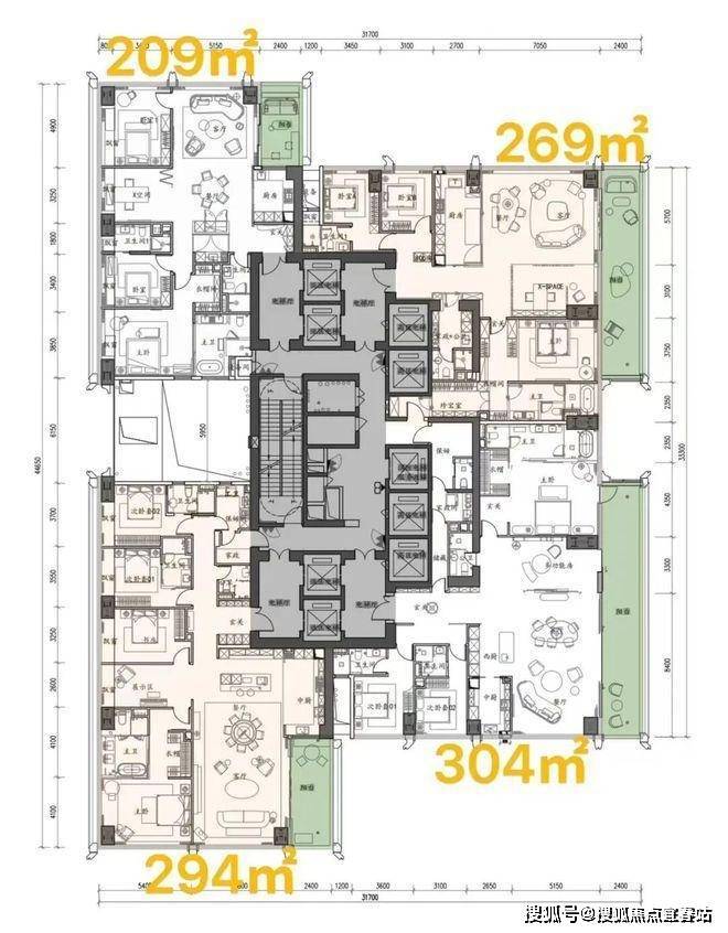 ④顶楼整层不是复式,约1100㎡顶奢大平层仅两套