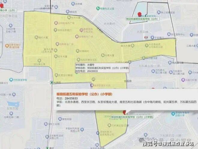项目自带1所幼儿园,北侧地块还规划有1所18班制幼儿园;根据龙岗区教育局的学区划分,小学学区为深圳科学高中五和实验学校小学部,距离约700米;初中学区包括深圳科学高中五和实验学校初中部、扬美实验学校初中部、云端学校初中部、深圳实验学校坂田校区初中部等。