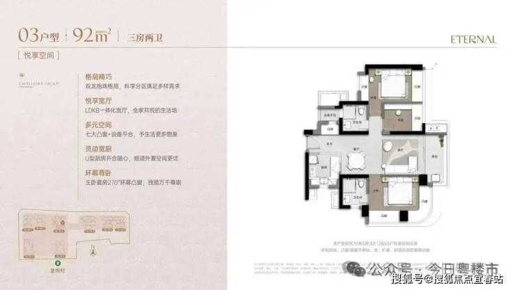 92㎡三房两厅:创新设计,适配年轻客群或小家庭,空间布局紧凑且功能齐全。