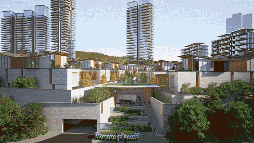 深圳院子位于宝安尖岗山片区,占地约4.89万㎡,容积率1.9,绿化率达40%。项目规划多层住宅与商业业态,主力户型210-230㎡,以地上3-4层、地下3层的立体空间布局,实现居住功能与私密性的平衡。区别于常规高层产品,其低密度规划在深圳同类新建住宅中较为少见,契合近年来改善型客群对空间尺感的升级需求。