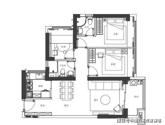 家政阳台定位,6人位餐厅满足多人就餐,主卧独立卫生间