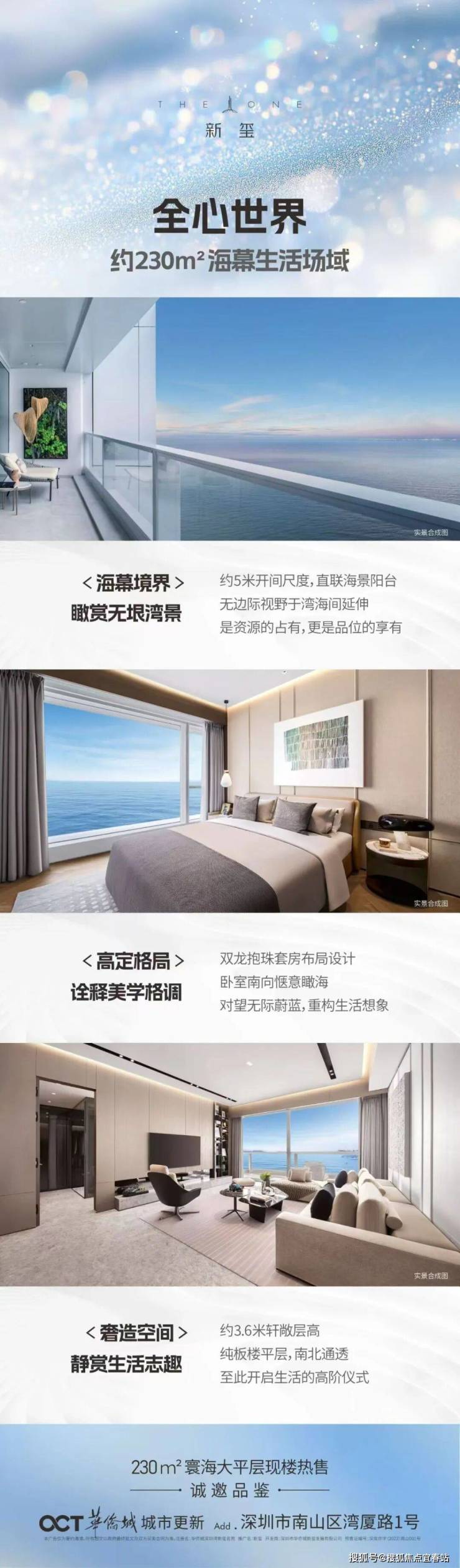 华侨城·新玺位踞湾区的黄金岸线——深圳湾,连接前海、后海两大城市中心,由三栋塔楼与商业裙房构筑出的新玺汇集着办公、酒店、商业、居住等综合业态,在250米的垂直城市中,折叠出海岸居住的万千奇景。