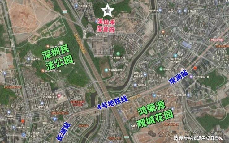 溪山禾溪相对更偏,位置比鸿荣源观城要差一些。距离观澜站直线距离约600米,但步行绕路可能要15分钟以上。