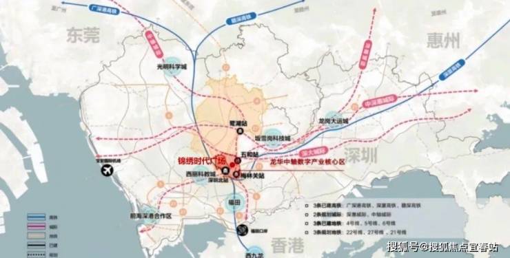 科创产业:北站商务核心区与坂田坂雪岗科技城双区交汇,集聚美团、深圳通、华为、富士康等龙头产业,形成超密集企业矩阵。