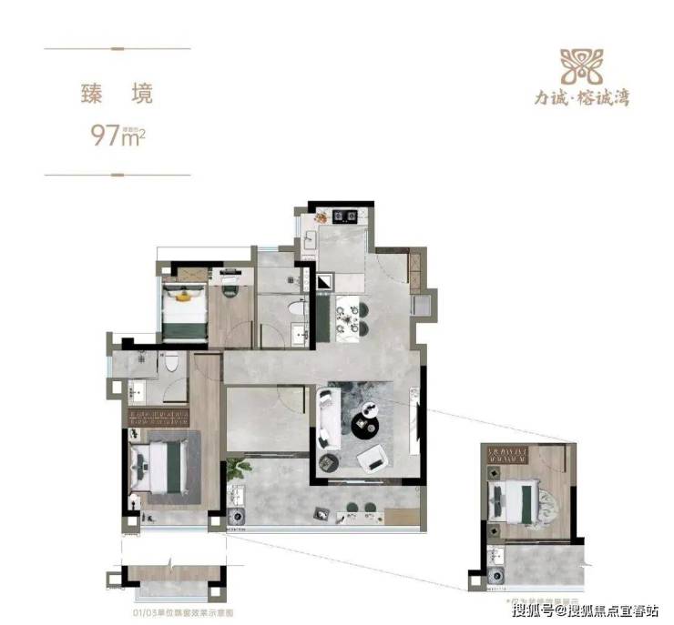 力诚·榕诚湾目前只对外开放建面约97㎡三房的样板间。