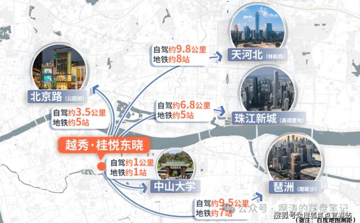 ✔五大主干道串联主城,咫尺越秀、瞬达天河,距离约8km内(约20分钟)通达珠城琶洲