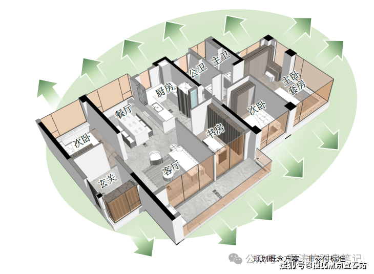 🔸极致4空间,对标市面约115㎡才有的尺度享受