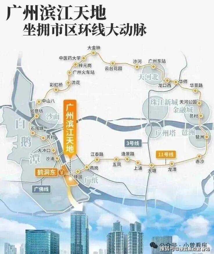 地铁方面:门口就是地铁11号线鹤洞东站,直线距离不到200米,规划中的佛山地铁11号线也紧挨项目南侧设站,通过广州首条环线11号线,可以速连珠金琶CBD,也可以在大湾区艺术中心,邂逅艺术的灵感,或漫步老西关永庆坊,感受百年烟火气,另外3站接驳22号线(在建中),未来南延段直通深圳。