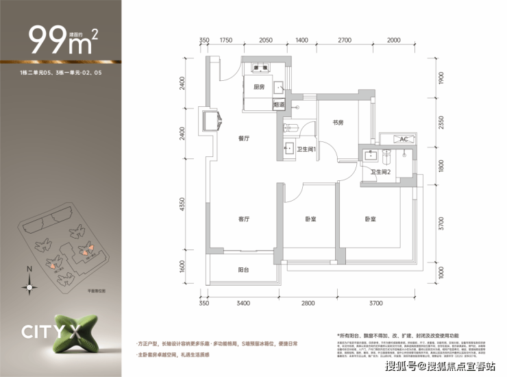 南北通透双厅设计,户型方正百变空间;双卫设计宜居便利,主卧270°宽景采光