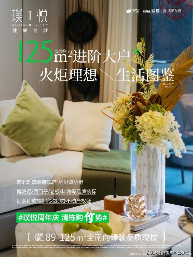 城芯理想生活究竟是什么样子?健康花城·璞悦 给您满分答案建面约125㎡双阳台舒阔美宅成熟火炬芯 进阶人生一步到位【城芯臻装现房】先看实景再买房,置业现房更安心臻选博洛尼/西门子/老板等品牌装标即买[齐款]即收楼,完税即办不动产权证【双景进阶大户】约6.6米朝南大阳台,北面家政阳台全明奢阔会客厅,与餐厨一体联通+1创意灵动空间,带套间宽境主卧火炬品质值选,尽悦大宅优雅璞悦周年庆 清栋钜惠价即刻开启城芯理想生活