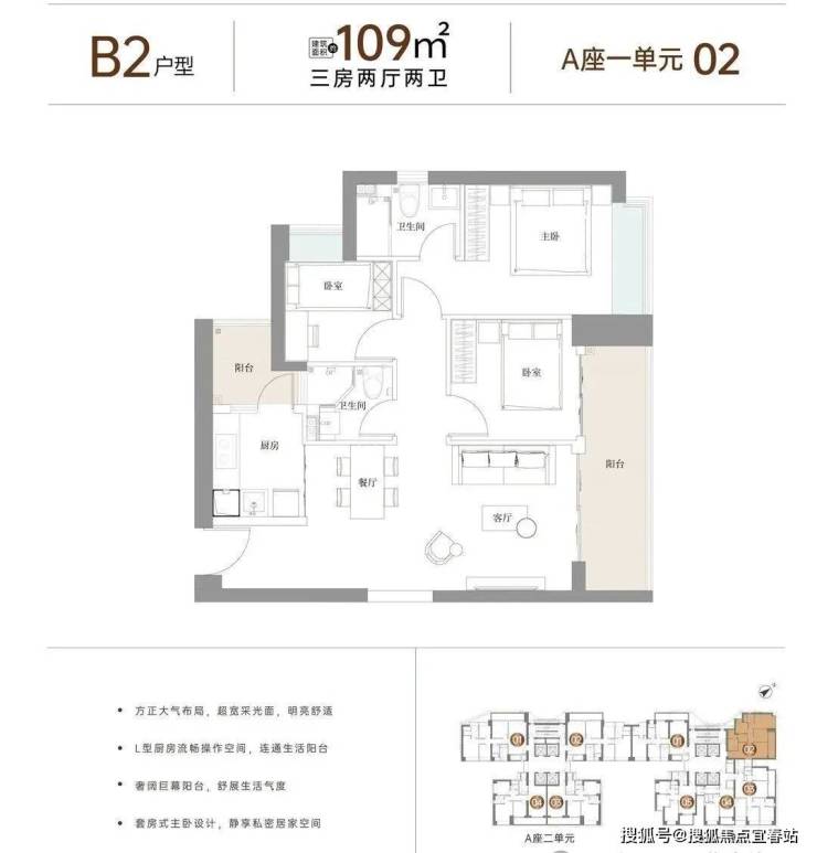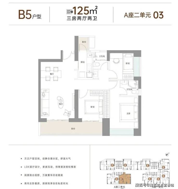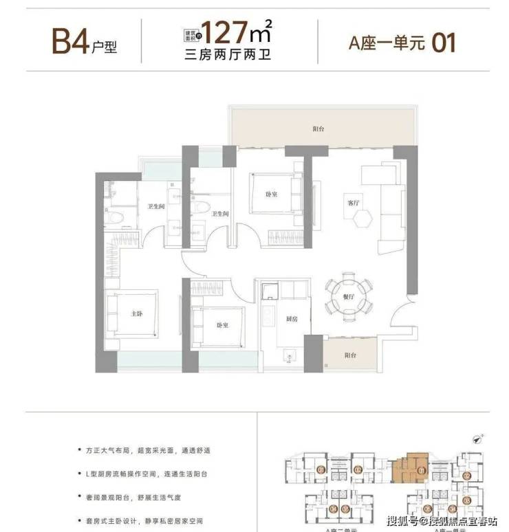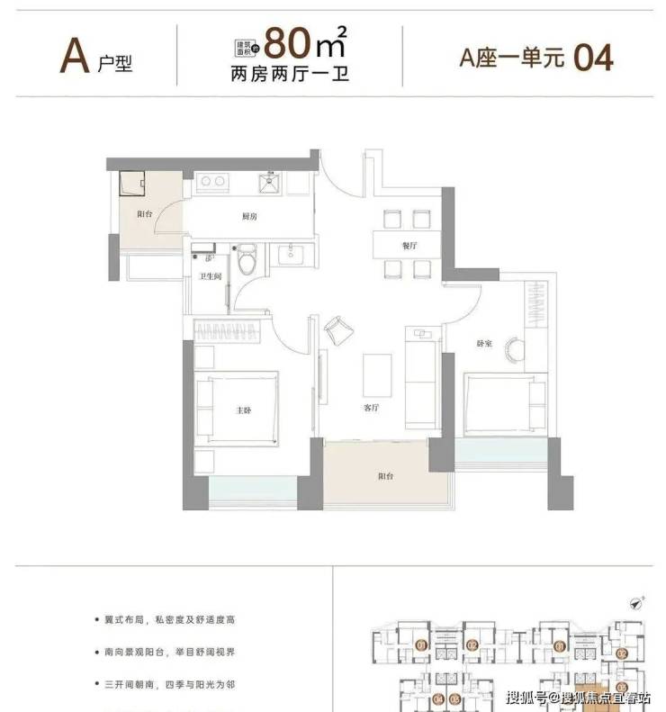 1栋A座一单元四梯五户约80-127㎡2-3房,户型方正·双阳台;