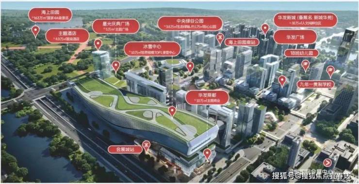 ,环伺会展湾花园城/花园里、约10万平冰雪世界主题商街、约18万平京基百纳、约10万平新沙天虹、约16.4万平海岸城等大型商圈。
