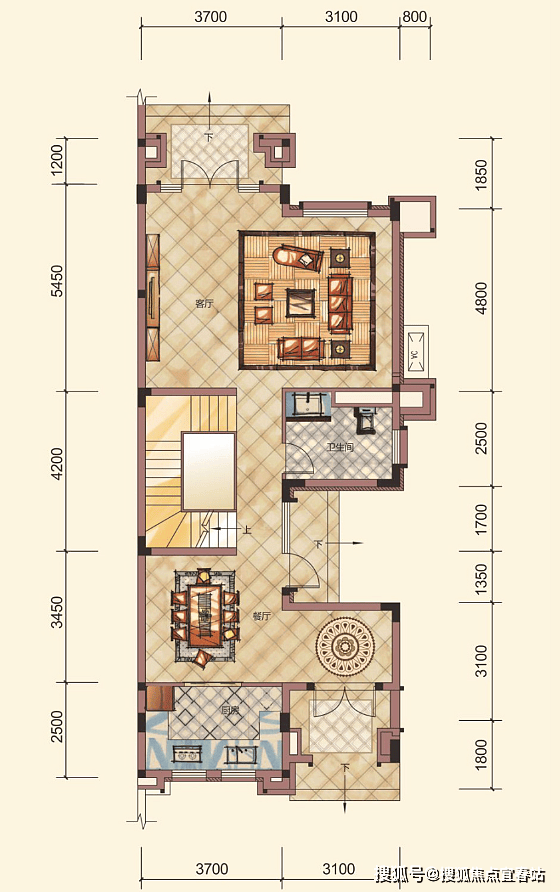 5.4米开间,3.8米高大客厅,宽阔的尺度,使每个家庭成员都能享有独立私密的空间。