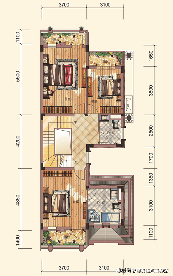 三层为主人房设计,主卧配备豪华衣帽间,更显大气也独具空间感。更重要的是,还有带超大露台的豪华书房,阅读、观景一步到位。