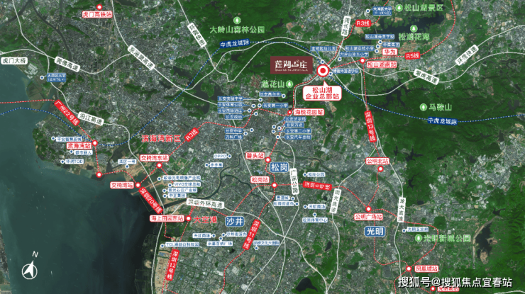 住在莲湖山庄,出行也是一大优势,距离规划中的松山湖企业总部仅700m,该处汇集东莞R3线、R5线和中虎龙城际线三条线,其中东莞R3线将接驳深圳地铁11号线。