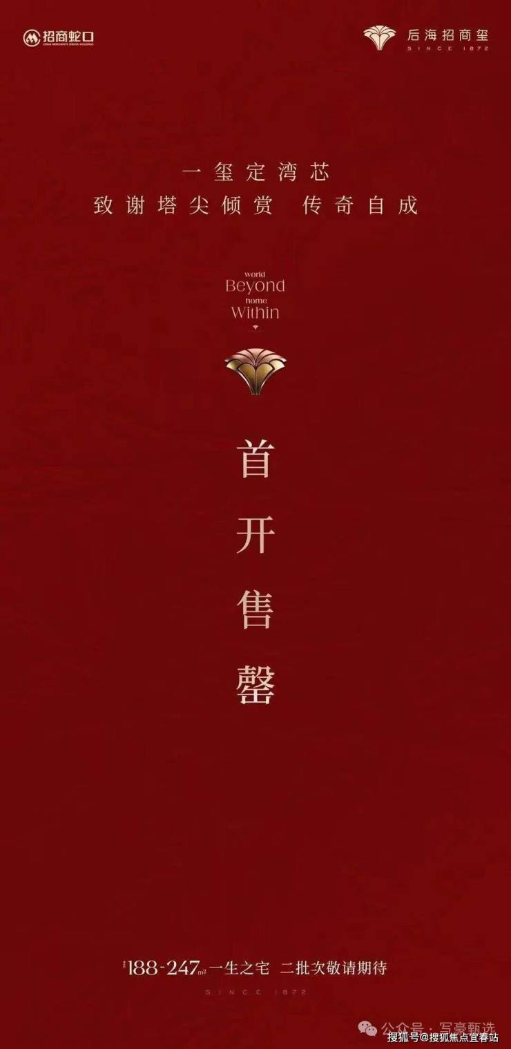 后海招商玺 首开售罄,致谢一城倾赏 #后海招商玺 196-236平,单价12.7-15.8万,深圳湾的贵,贵在不可复制;后海的稀,稀在寸土寸金。当招商蛇口深耕蛇口十年,以“玺系”TOP级修为落子后海双芯,一座代言深圳湾封面的纯粹大平层,终于揭幕——这就是后海招商玺,左手蛇口百年底蕴,右手深圳湾超级总部未来,为塔尖圈层定制专属人居范本。