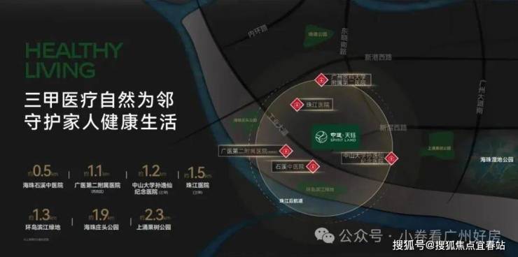 项目门口就是海珠区石溪中医院。3公里范围内南方医科大学珠江医院、广州医科大学附属第二医院、中山大学孙逸仙纪念医院。