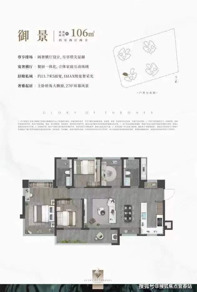 设计的是横厅南北通透格局,客餐厅开间5.6米,餐厨一体化,约13.7米超幕视野,超长阳台,主卧转角270°大飘窗,只有2栋07户型才有,得房率:78.99%(不含赠送),阳台主朝西南向。