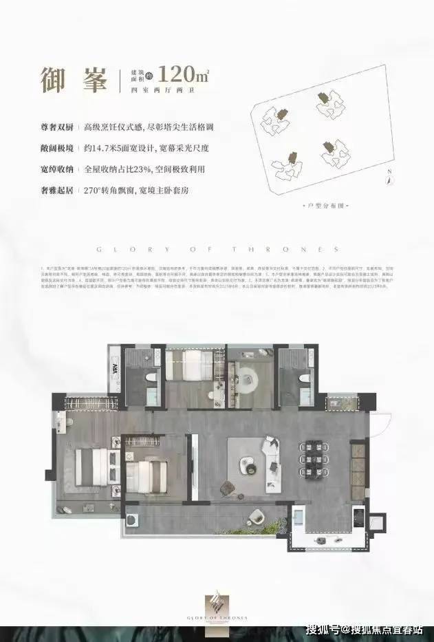 设计的是横厅南北通透格局,客餐厅开间8米,约14.7米超幕视野,超长阳台,主卧转角270°大飘窗,U型厨房,得房率:78.99%(不含赠送),阳台主朝西南或东南向。