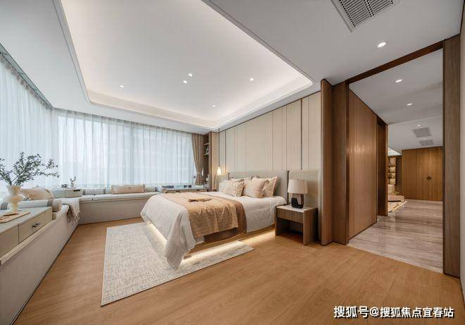 室外景观满分,室内设计必须更加分,主卧更是采用了L型双面屏设计,窗外美景尽收眼底,林屿间最温柔的妥帖。